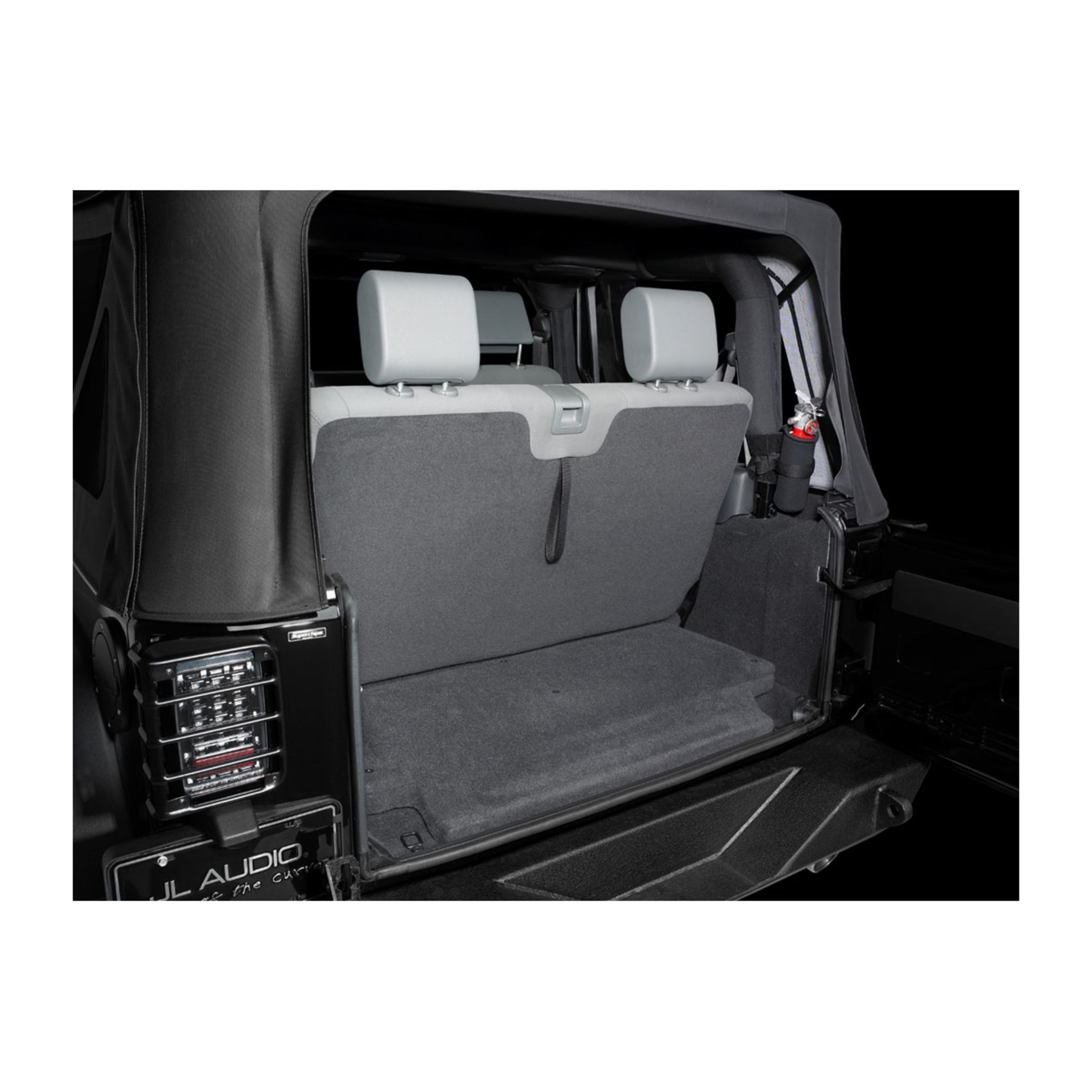 Stealthbox Enclosed Subwoofer For 2007-2017 Jeep Wrangler 2-Door Is A Sealed, Carpet-Covered Enclosure With A 10-Inch W1V3 Subwoofer.